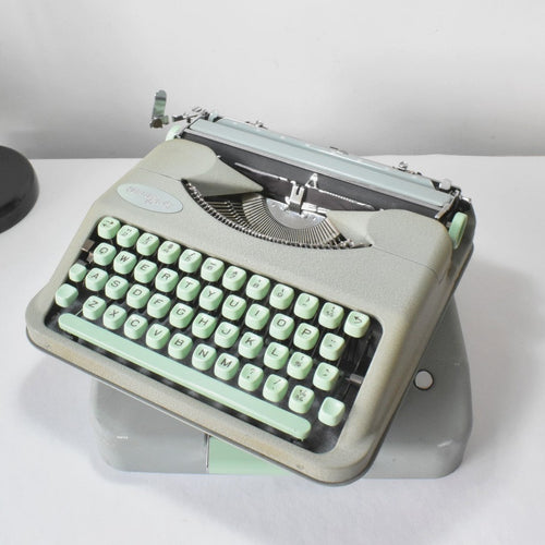 Draagbare Seafoam Hermes babytypemachine uit 1957