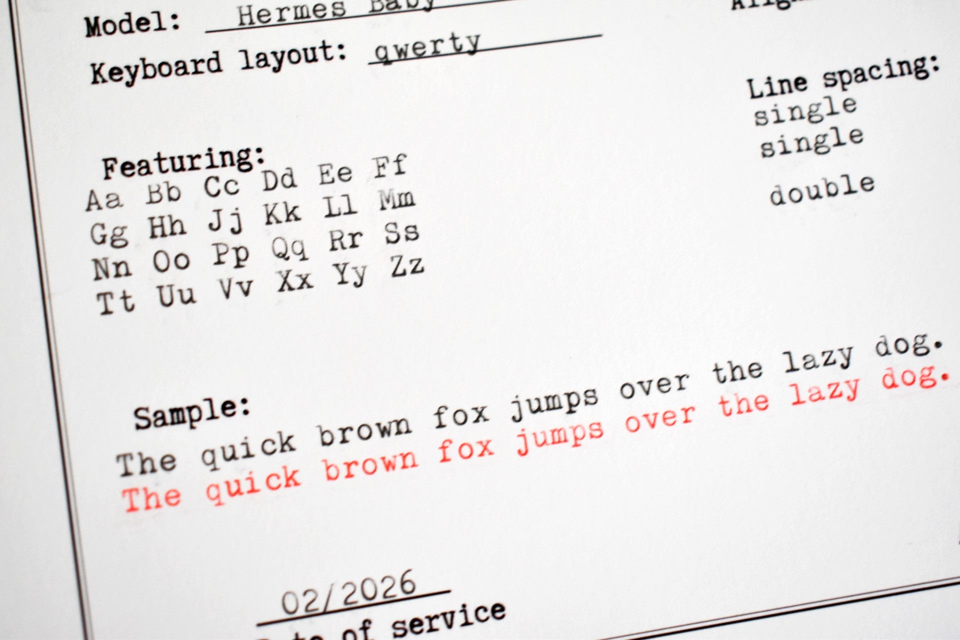 Al onze typemachines worden gebruiksklaar geleverd. Alle machines zijn voorzien van een nieuw inktlint dat minimaal 500 A4-pagina's meegaat.