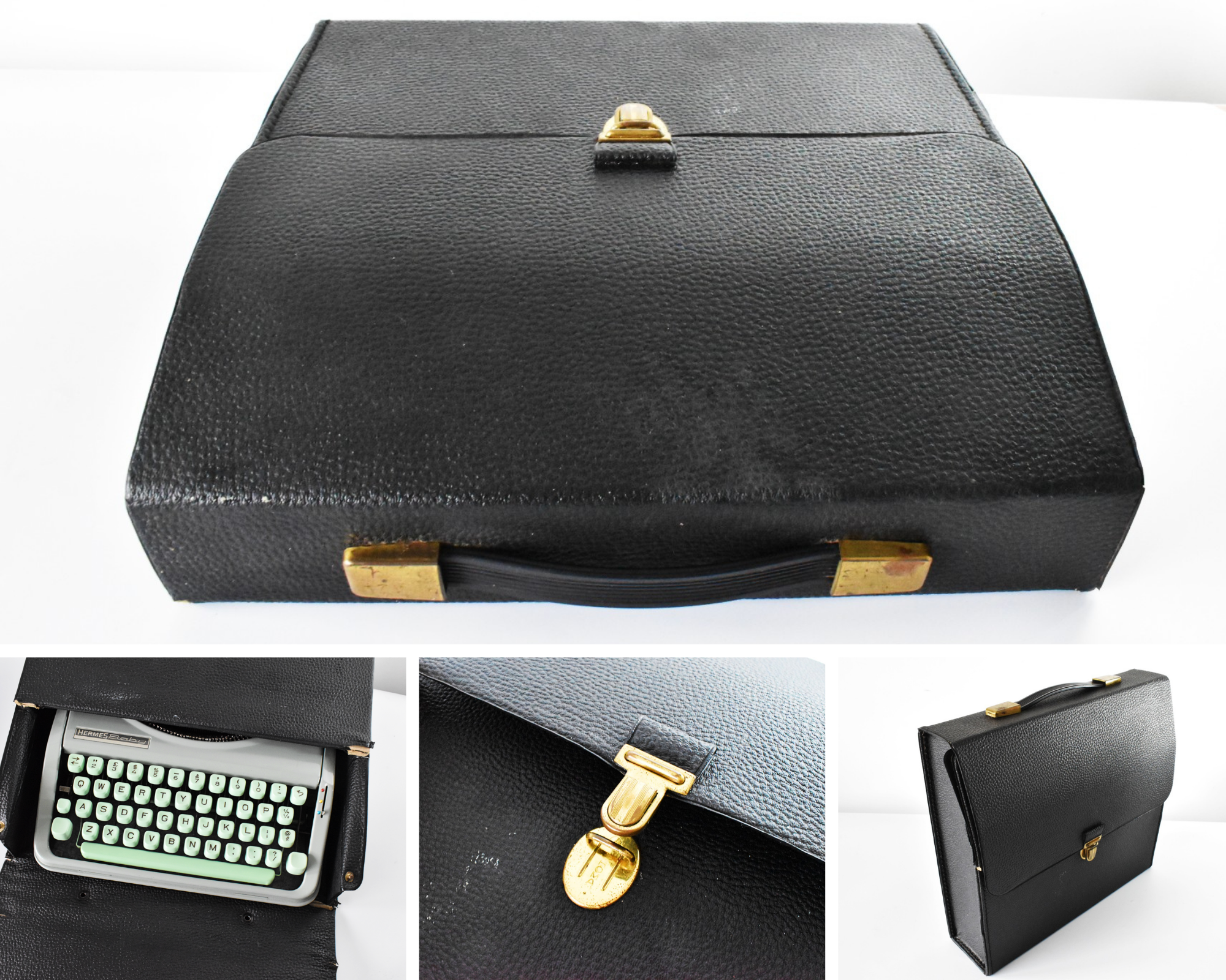 *CASE: De case is uniek! Het is de enige zwarte leren case die we hebben gezien! Hij is in uitstekende staat. Het logo van de casemaker "ATOM" is gegraveerd op de sluiting aan de voorkant. De sluiting is schoongemaakt en gepolijst en werkt prima. De handgreep is eveneens in uitstekende staat en het leer glanst en is professioneel gerestaureerd/behandeld.