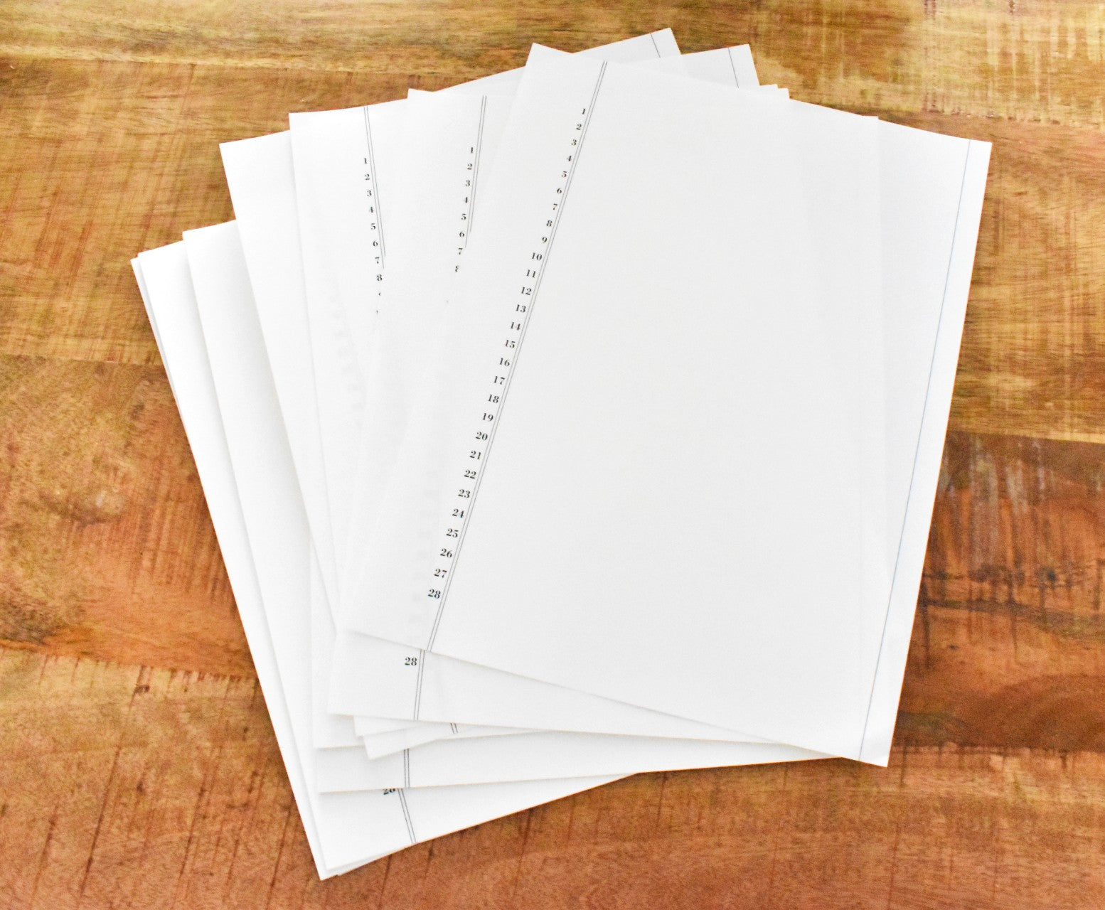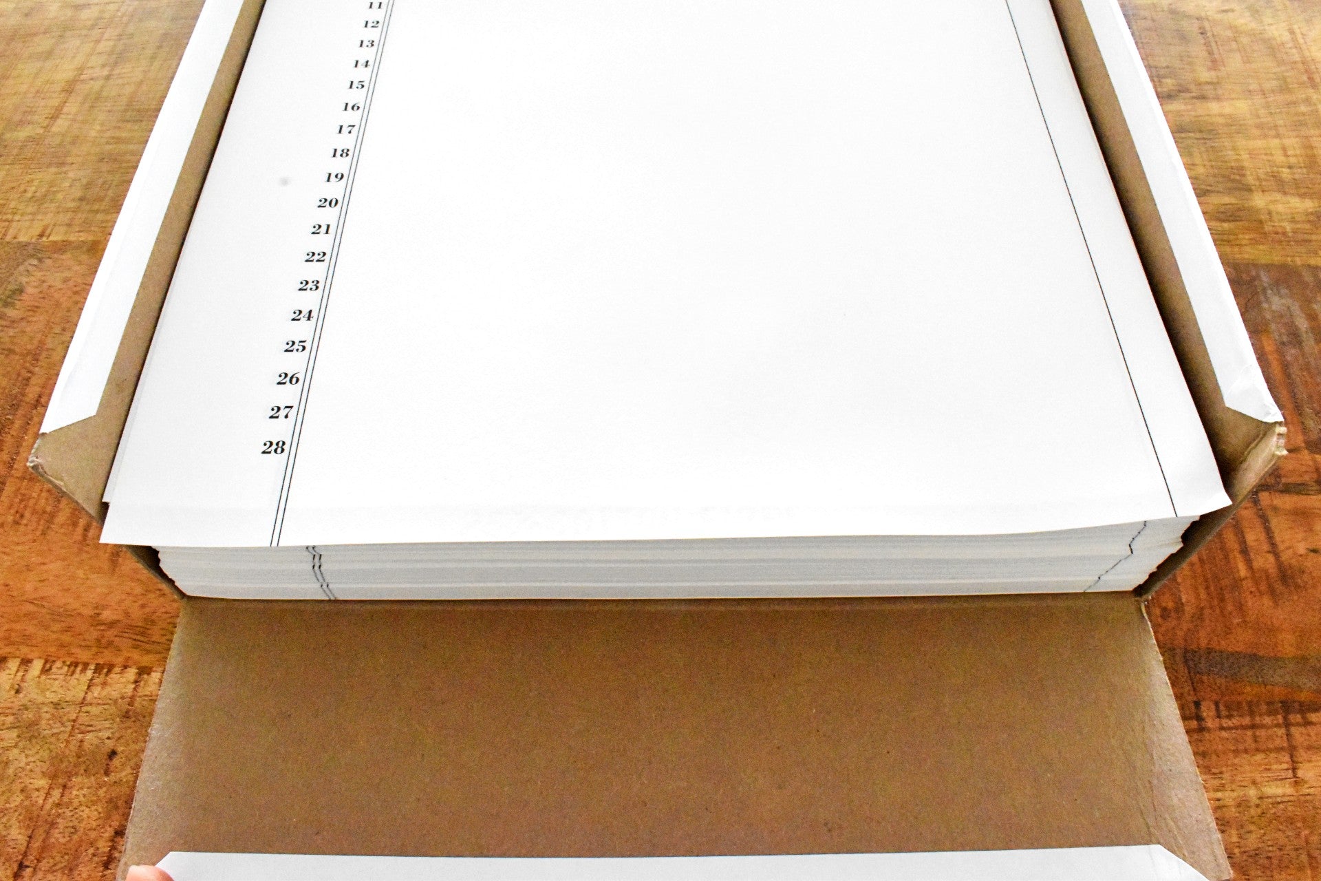 - Papiervellen hebben een formaat van 8,5 x 11 inch