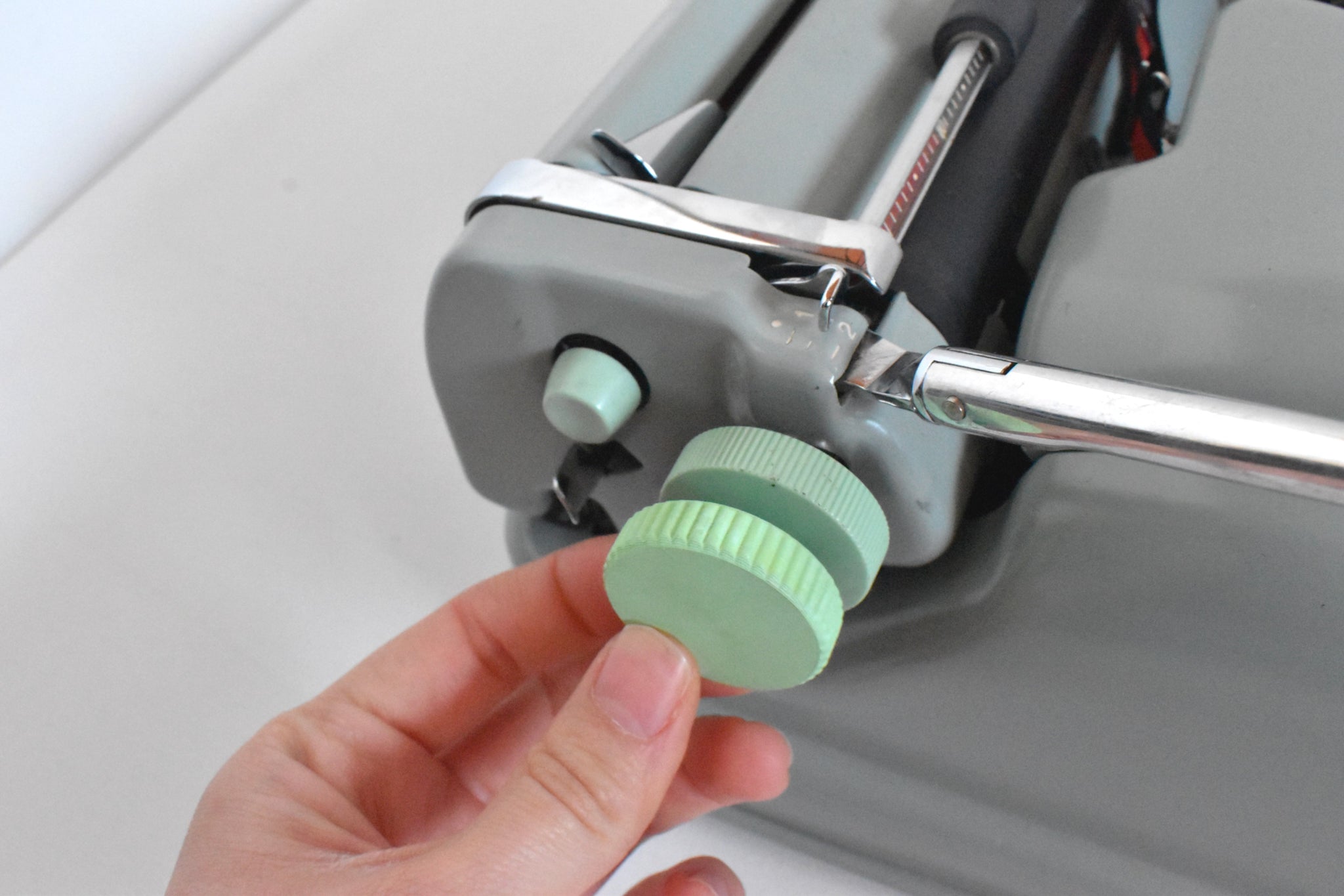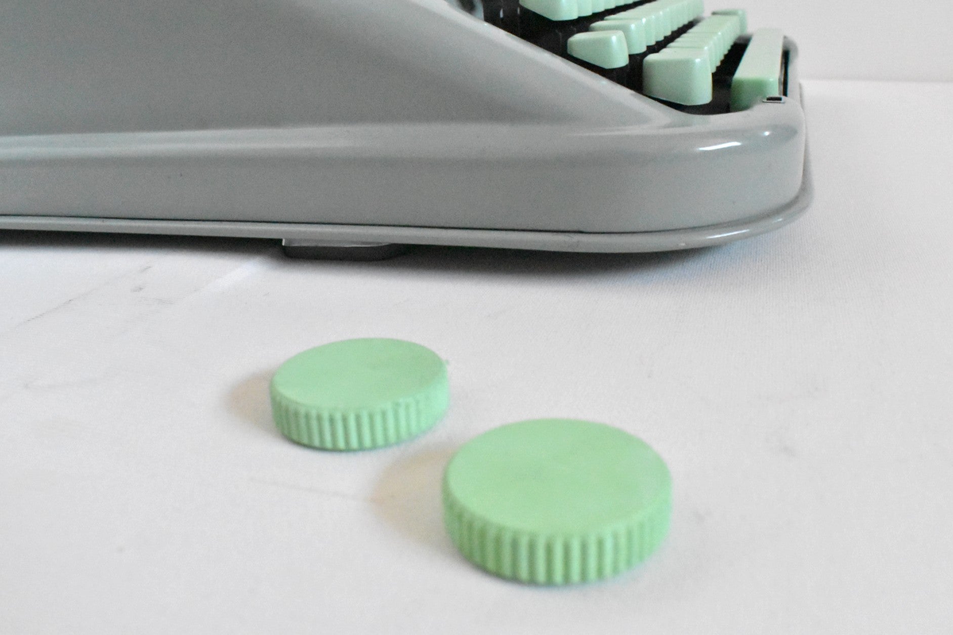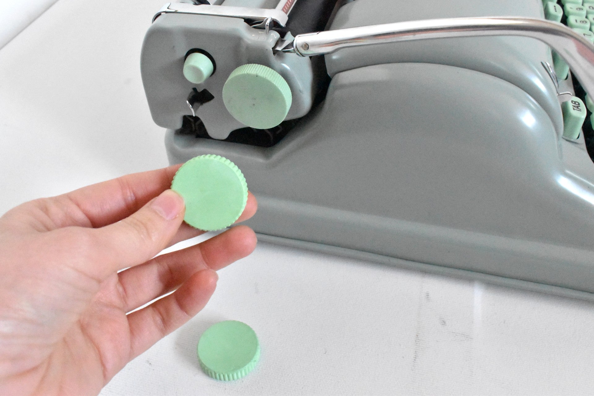 Hermes 3000 en Hermes Media 3 platenknoppen werden oorspronkelijk gemaakt van kunststofcomposiet, een hard materiaal dat na verloop van tijd erg broos wordt. Dit is een normaal proces voor dit type harde kunststof dat in de jaren 60 werd gebruikt. Daarom zie je vaak typemachines met gebroken, gelijmde of ontbrekende platenknoppen. Als je een nieuwe knop voor je typemachine nodig hebt die beter presteert dan je oude knop en bovendien een goede kleurmatch garandeert, lees dan verder.