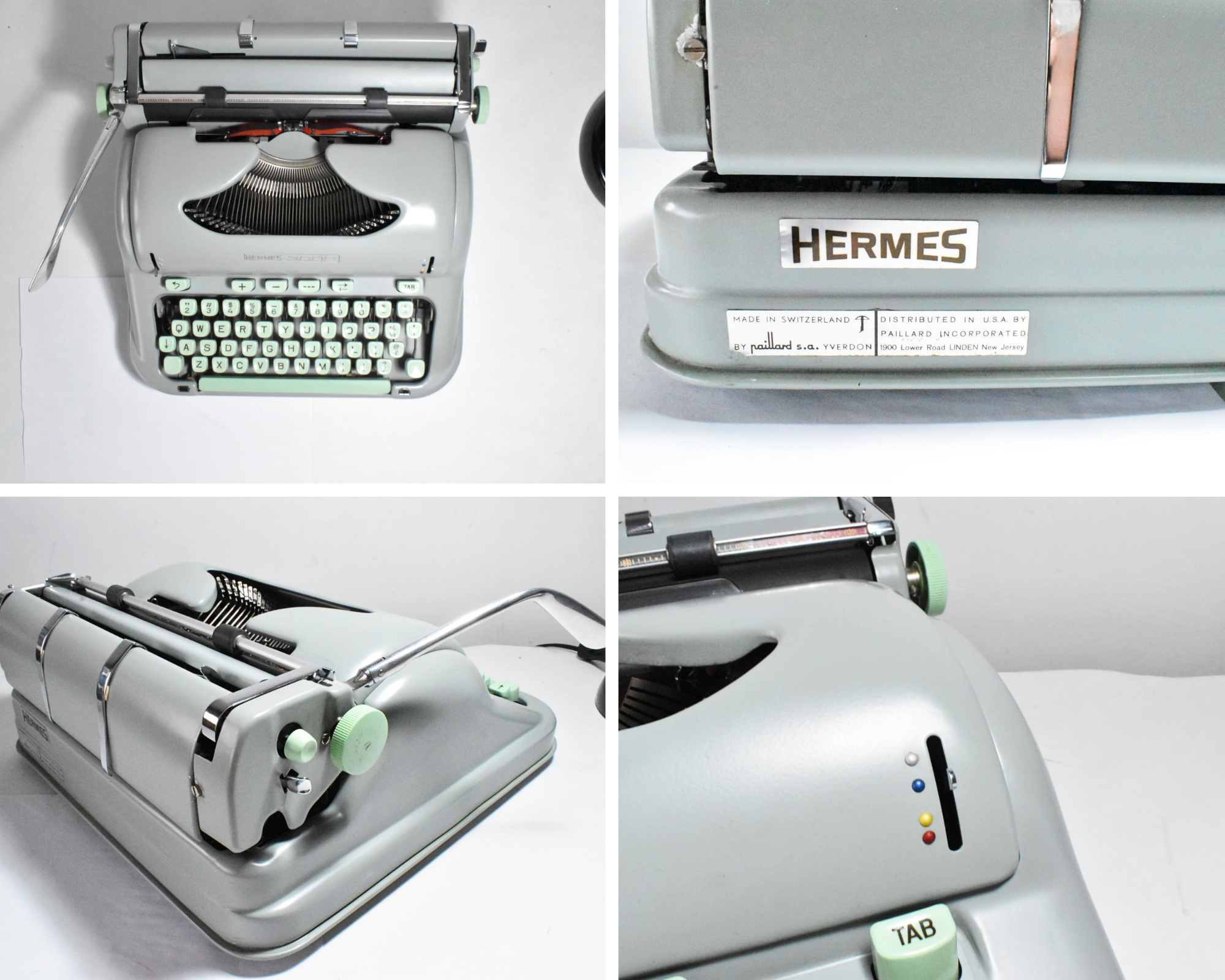Het is een werkelijk iconische Hermès 3000 typemachine met mintgroene toetsen en behuizing. Hermès typemachines werden in Zwitserland ontwikkeld door het bedrijf Paillard, dat begin 19e eeuw begon met het maken van muziekdoosjes en begin jaren 20 overstapte op typemachines. De Hermès 3000 is misschien wel de beroemdste en coolste typemachine ooit.