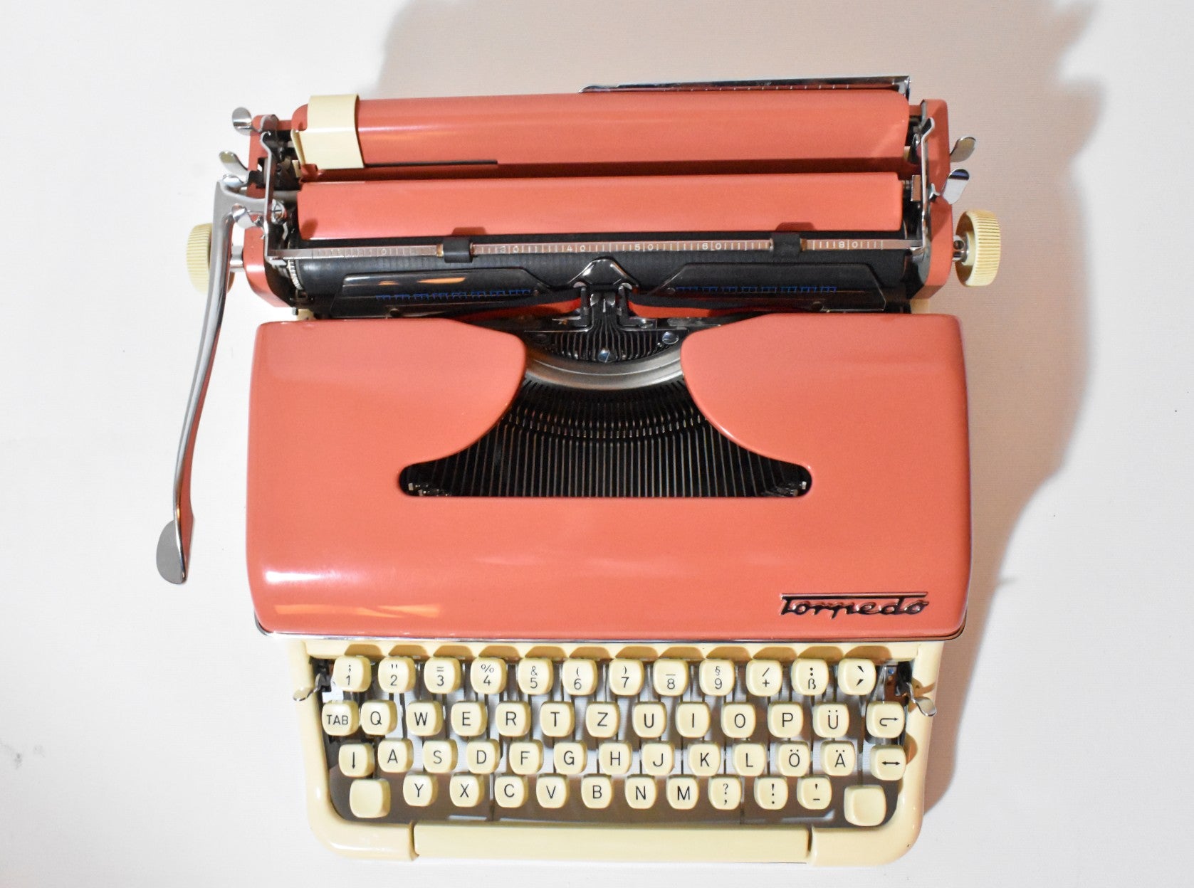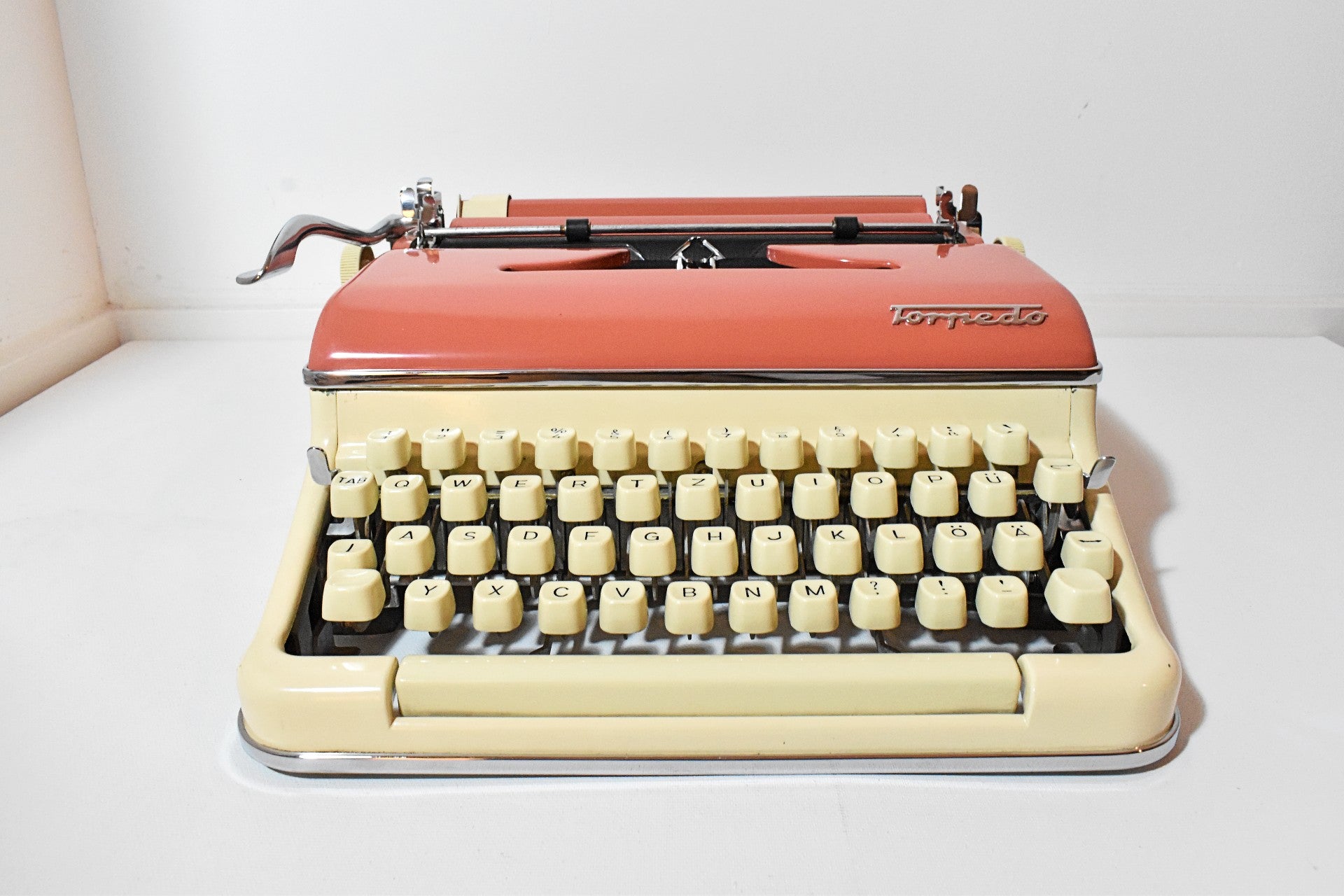 Een volledig onderhouden en prachtige Duitse Torpedo 18s typemachine uit 1961 in een ZELDZAME zalmkleur, zeer uniek!