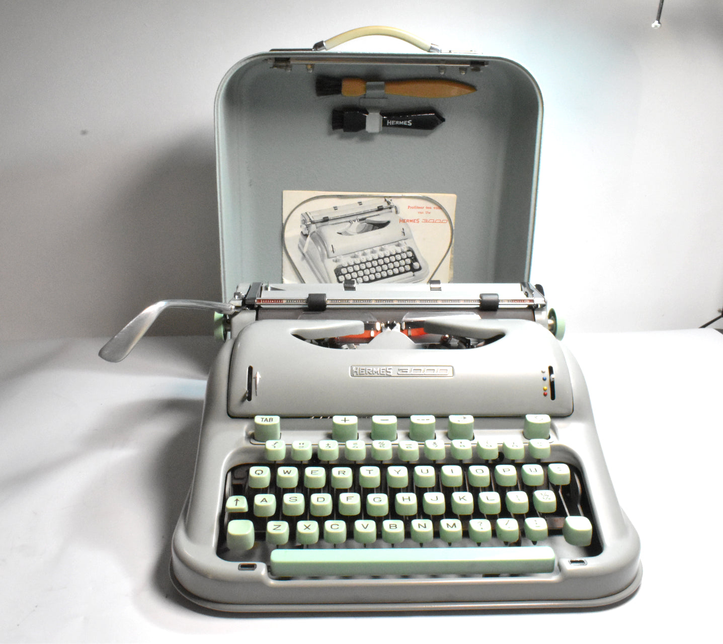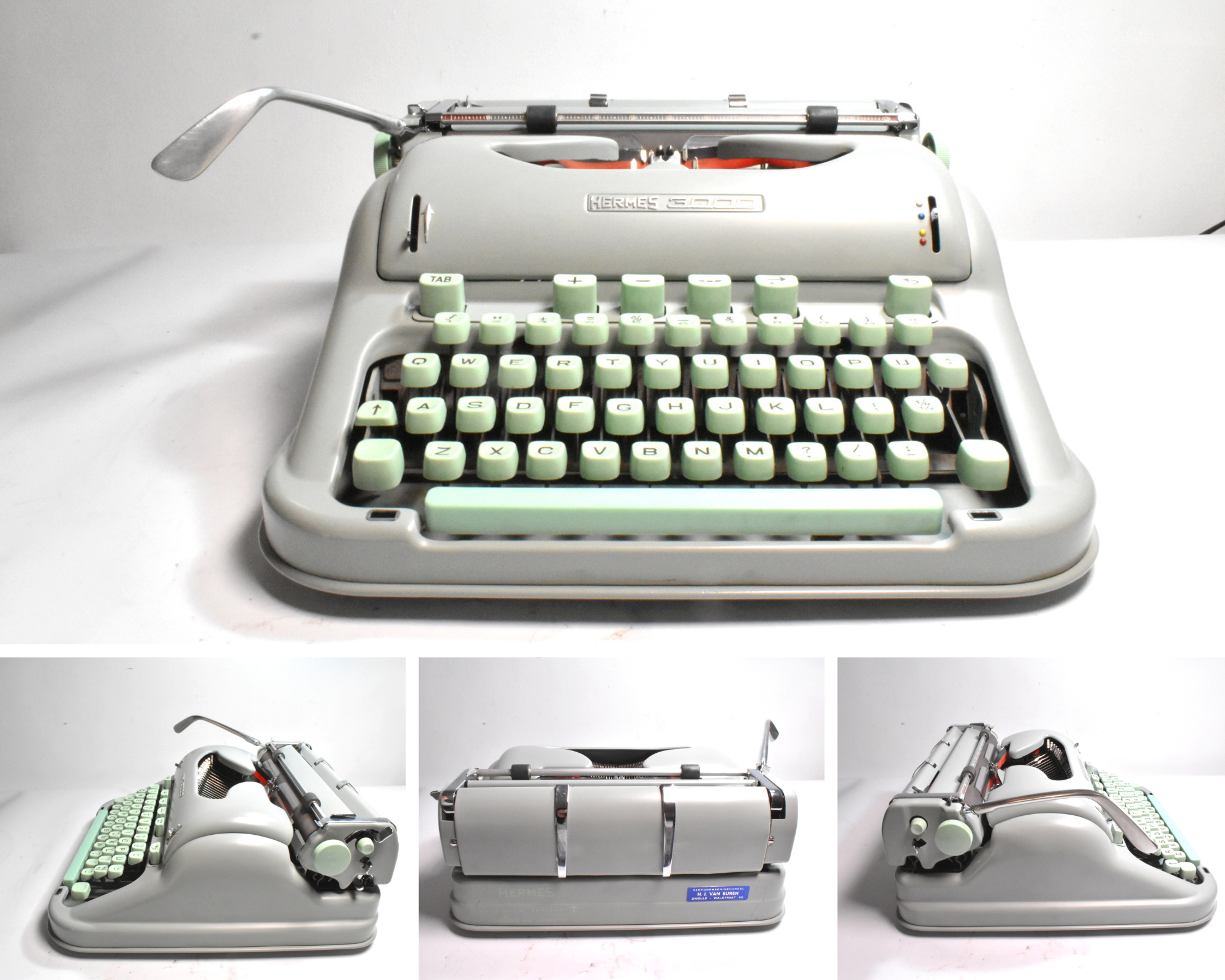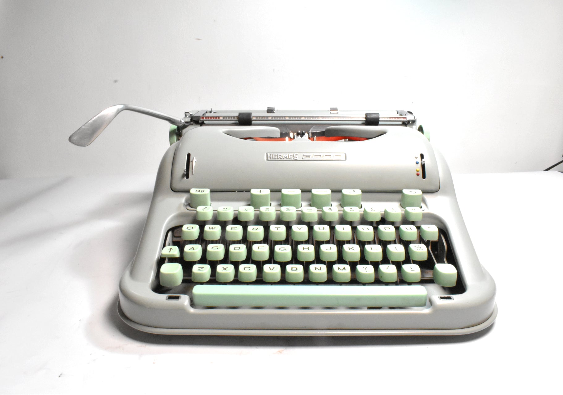 We presenteren u de iconische Hermes 3000 typemachine met mintgroene toetsen en behuizing. Hermes typemachines werden ontwikkeld in Zwitserland door het bedrijf Paillard, dat begin 19e eeuw begon met het maken van muziekdoosjes en begin jaren 20 overstapte op typemachines. De Hermes 3000 is misschien wel de beroemdste en coolste typemachine ooit. Hij beschikt over: