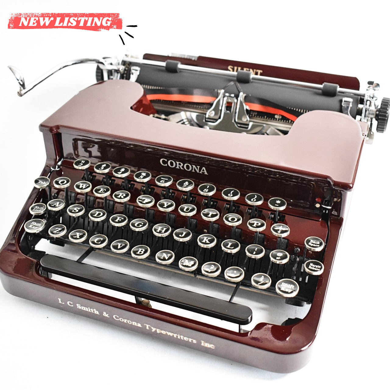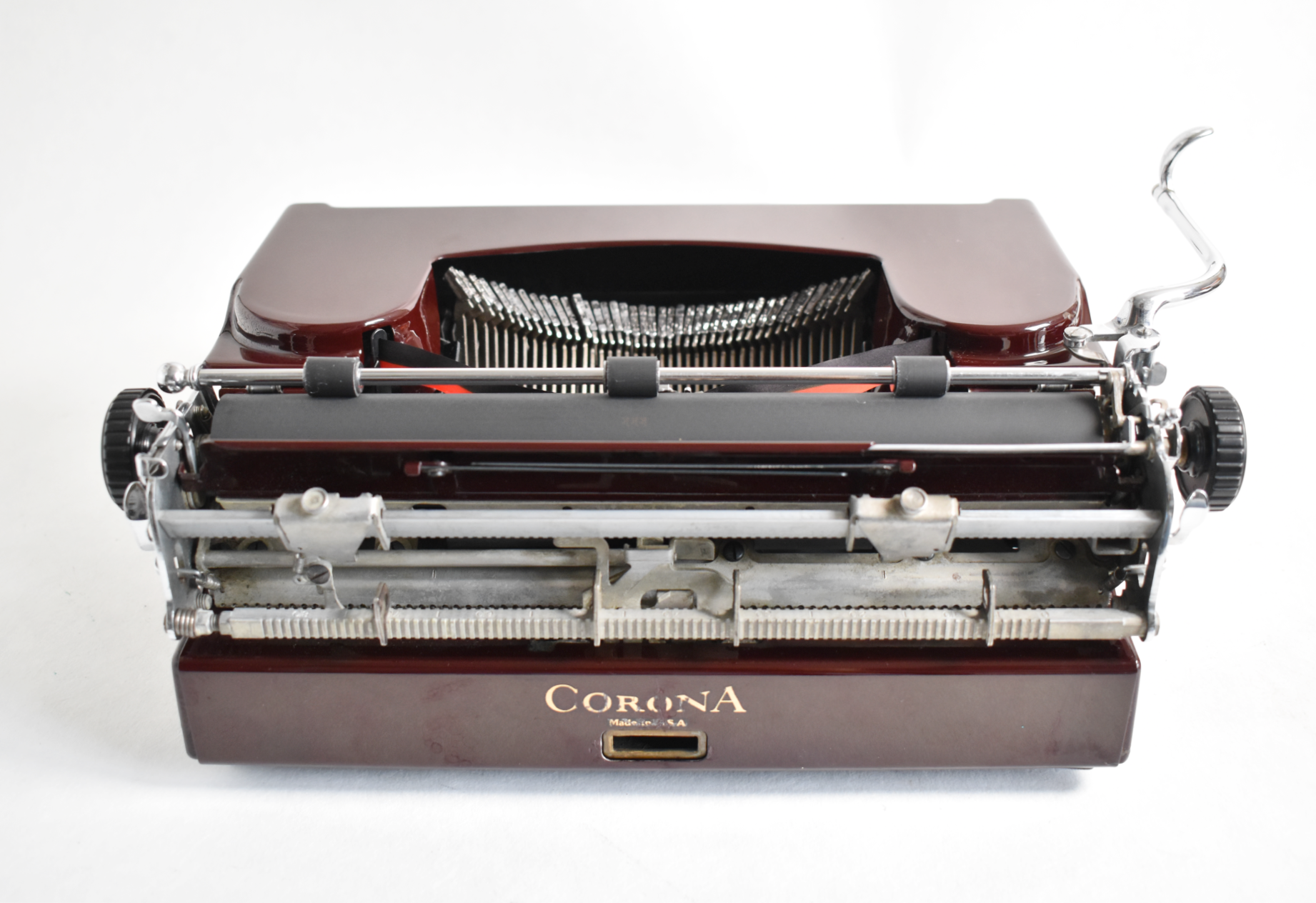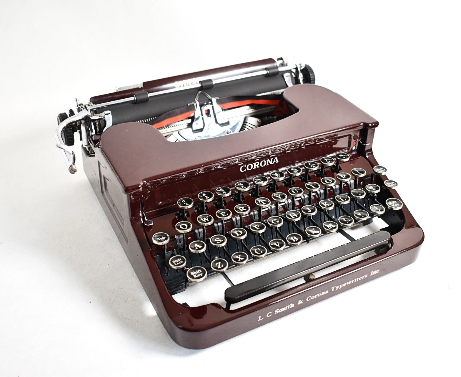 Smith Corona is one of the most sought after typewriter brands, produced many popular portable models for writers throughout the years. This early 1936 Standard Smith Corona is a model of the 1S series. It has a great maroon finish (less common than it's black counterpart). It is a great typewriter choice for writers because it is heavy-duty and can keep up with regular use! This Corona typewriter boasts with a supple and light key feeling, fast responsive keys, and a light segment shift.