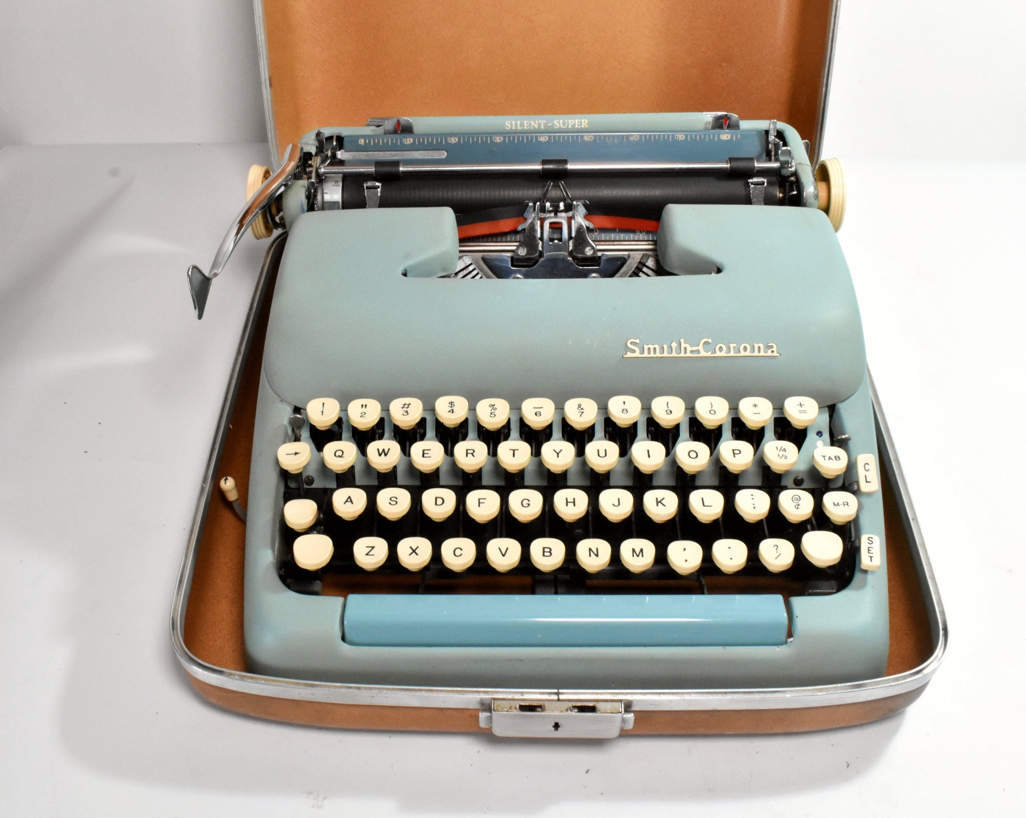 Smith Corona is one of the best typewriter brands,  produced many popular portable and desktop typewriter models for writers throughout the years. This 1950s  Smith Corona Silent-Super (known as 5's series) is one of the most uncommon models in Europe (made in the USA). It is a great typewriter choice for first time typists and slow typists because this typewriter is heavy-duty and can keep up with regular use! This Corona typewriter boasts with a supple and light key feeling, fast responsive keys, and a light segment shift.