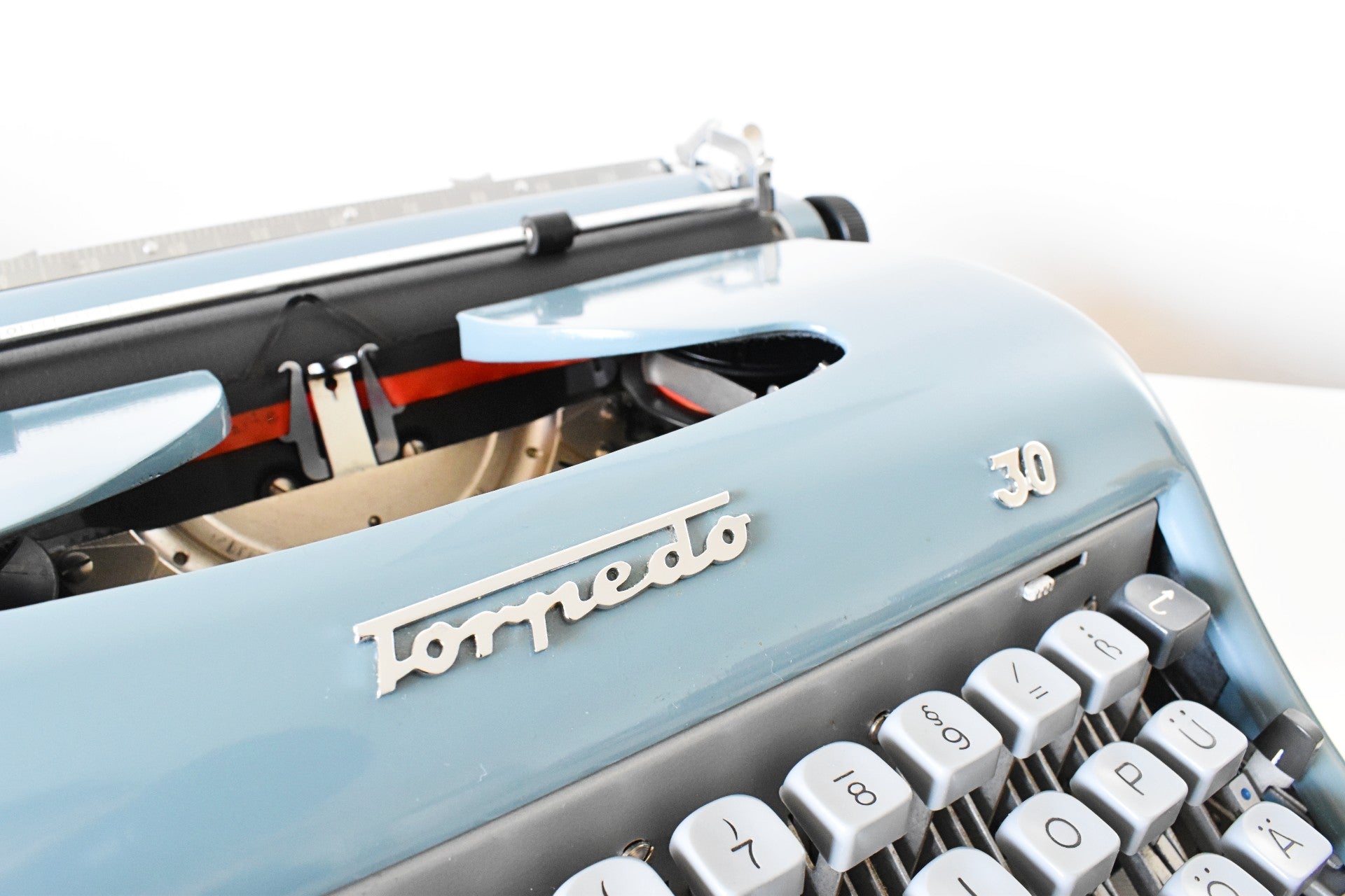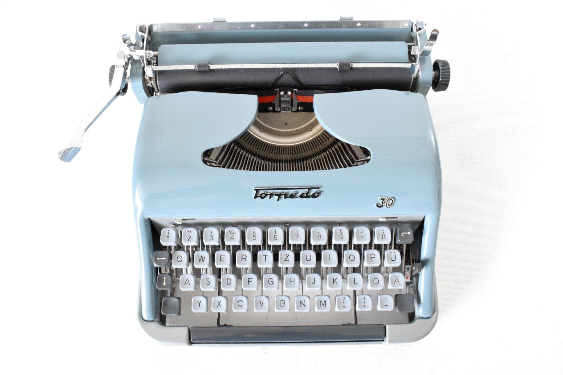 A very elegant typewriter - model Torpedo 30. It was made in Germany in 1958 and it types with 12 characters per inch. This typewriter is so comfortable to type on! It has many great functions - comfortable keys - very responsive, customizable functions - such as margins setters, color switch (for different colors of ink) and 4 settings for line spacing (you can space with 1,2,3 or 4 rows and easily make paragraphs)