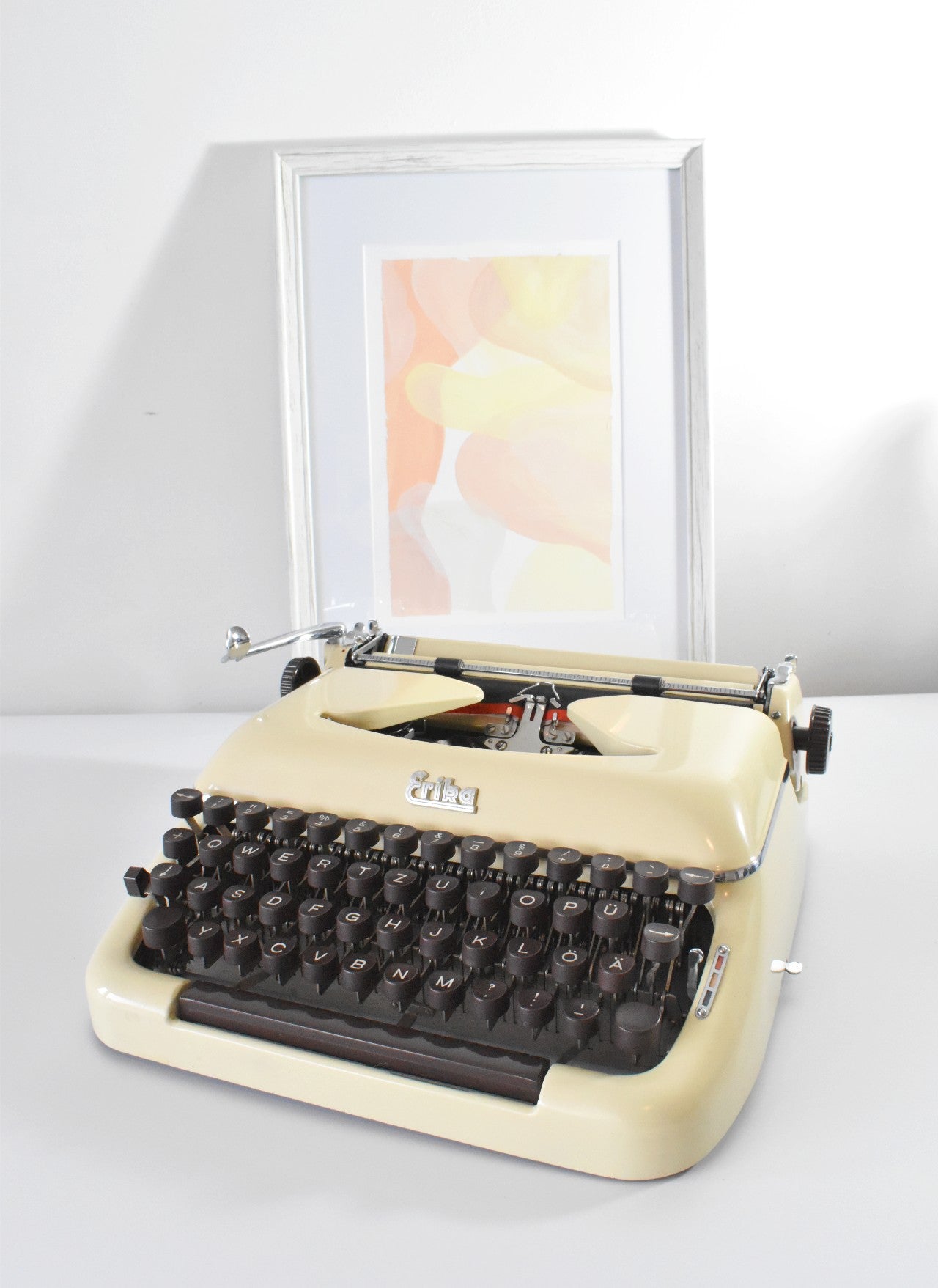 One of the best typewriter models for enthusiasts and writers. Stunningly beautiful East German portable typewriter from the early 1960s. This typewriter is one of the finest typewriters ever made combining precise German mechanics and a stunningly elegant design.