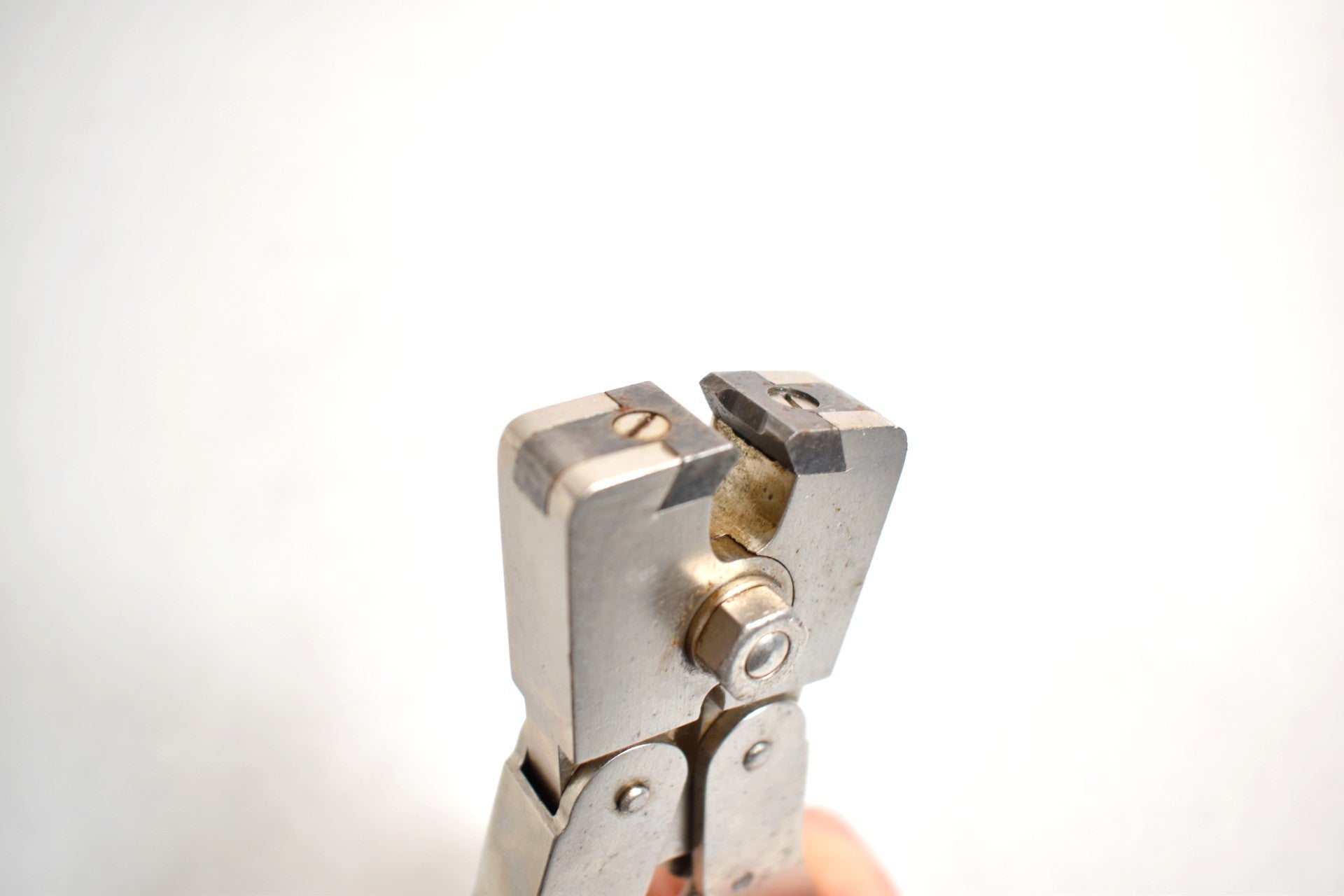 These are typecutter jaws - can cut or hold the typebar. A vintage typewriter repair tool, not made anymore. The tool is mentioned as tool nr. 9 in AMES catalog.