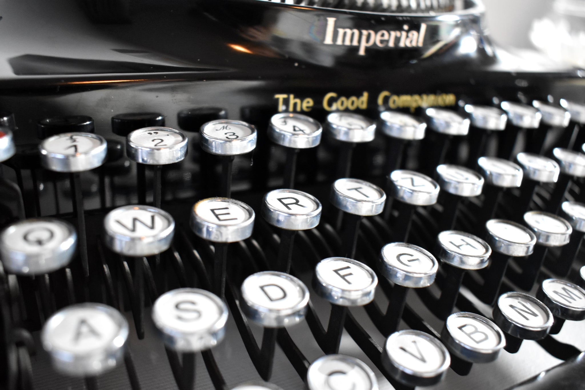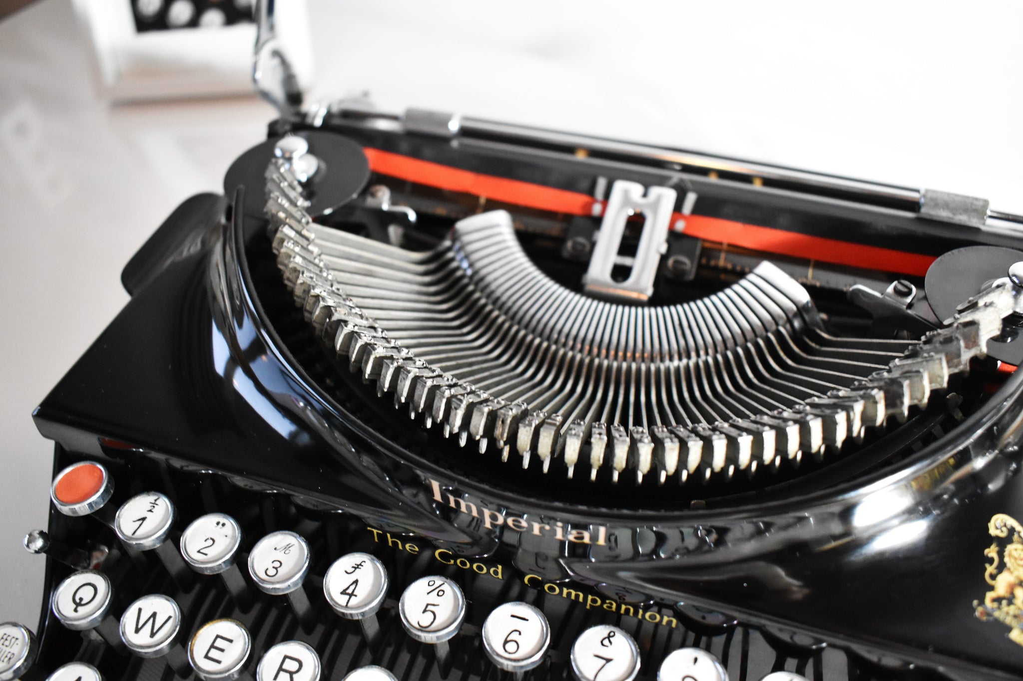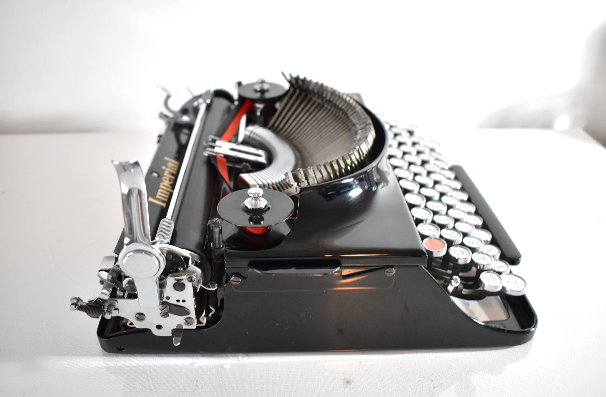*COSMETICS: This typewriter is in great condition! And when I say great - I mean FABULOUS! Great condition of the black paint - it's still very shiny and reflective. The chrome levers are still in great condition. The machine is finished off with a protective, museum-quality wax in order to protect the paint from oxidation, dirt, scratches and fingerprints. It has the stamped royal logo of King George V.