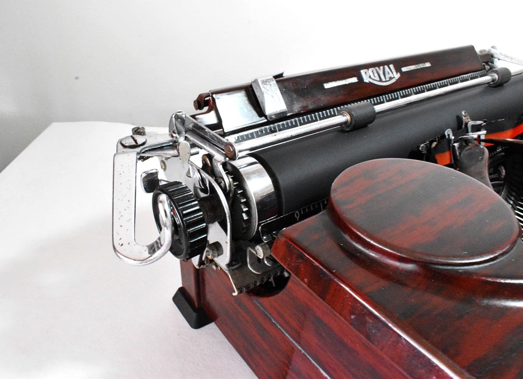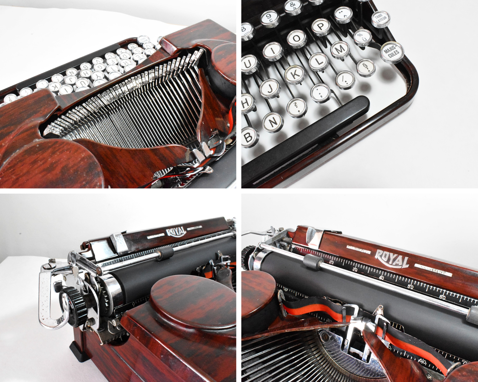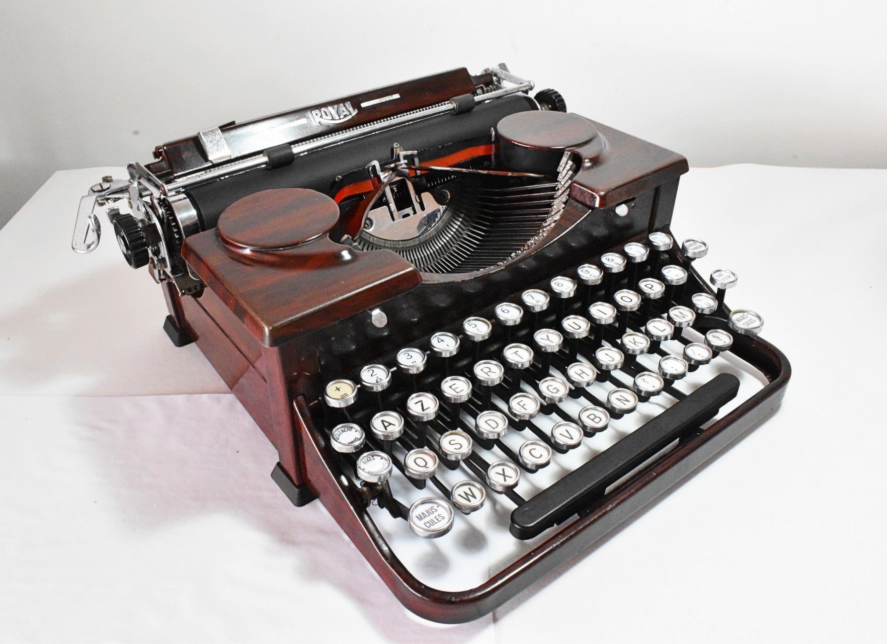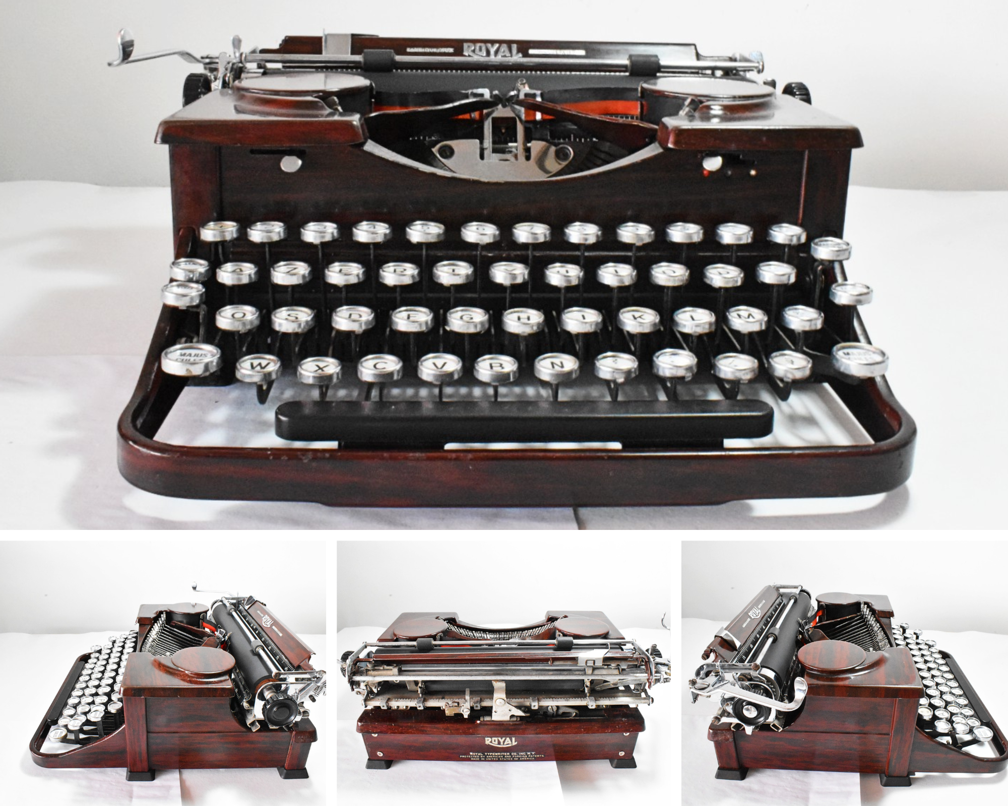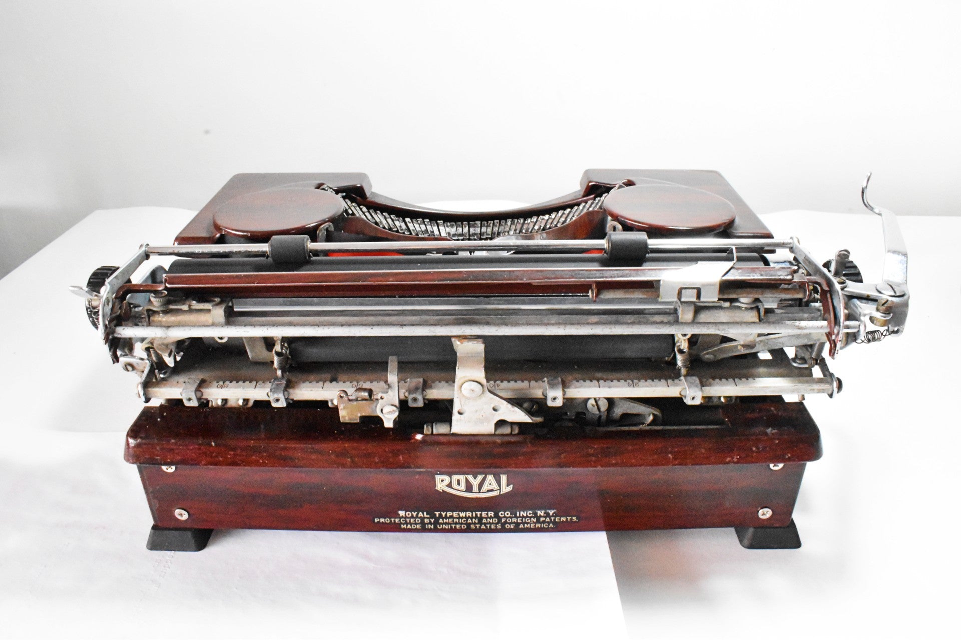 Presenting to you a great American typewriter model - Royal P made in the US. This typewriter is fabulous and has a new platen and new rubber feet. It is not only 'perfect', clean but also well preserved. Comes in original woodgrain finish. This is a collector's piece. It is in good cosmetic condition - as seen from photos as well as excellent mechanical condition. It is a great model for those - who wish to dive into early Royal typewriter models. This typewriter model has a great reputation for sturdy mechanics, reliable and relatively easy to use with fast keys.