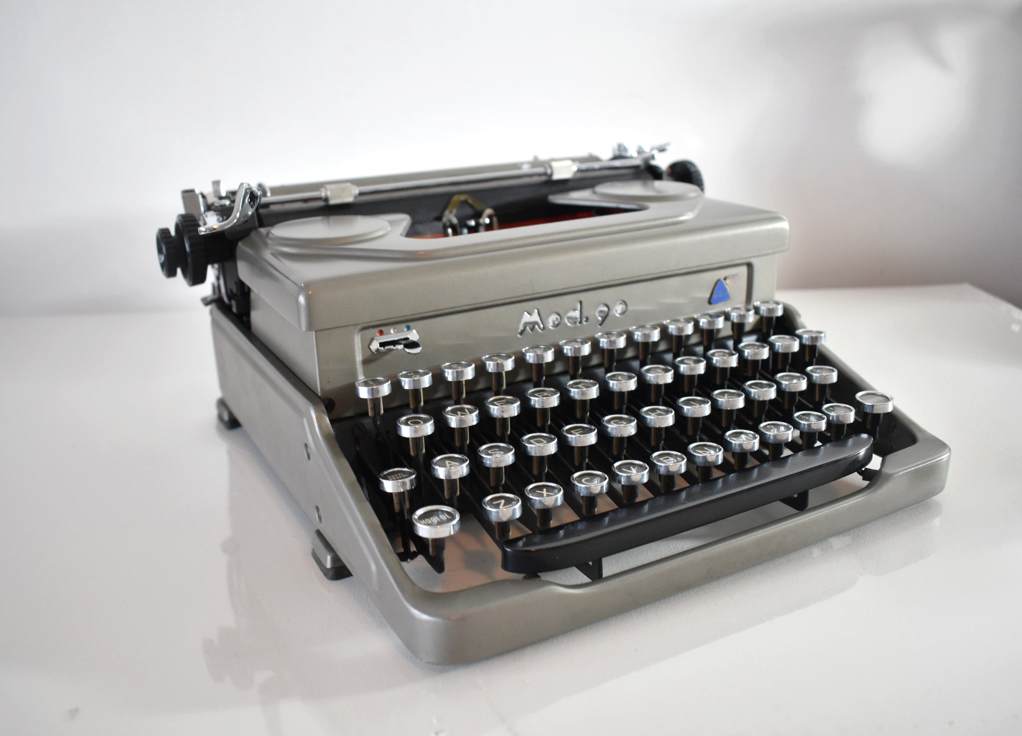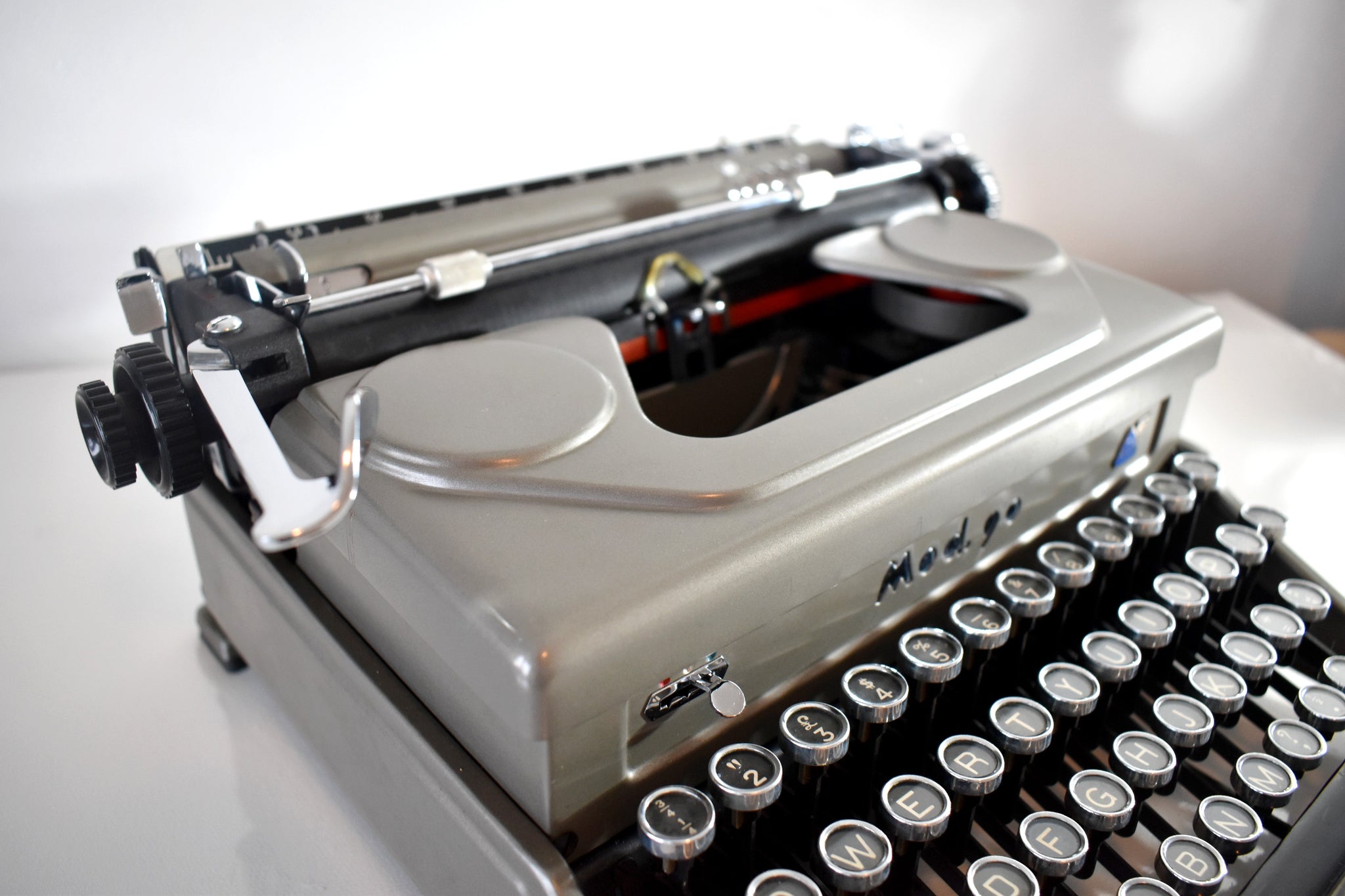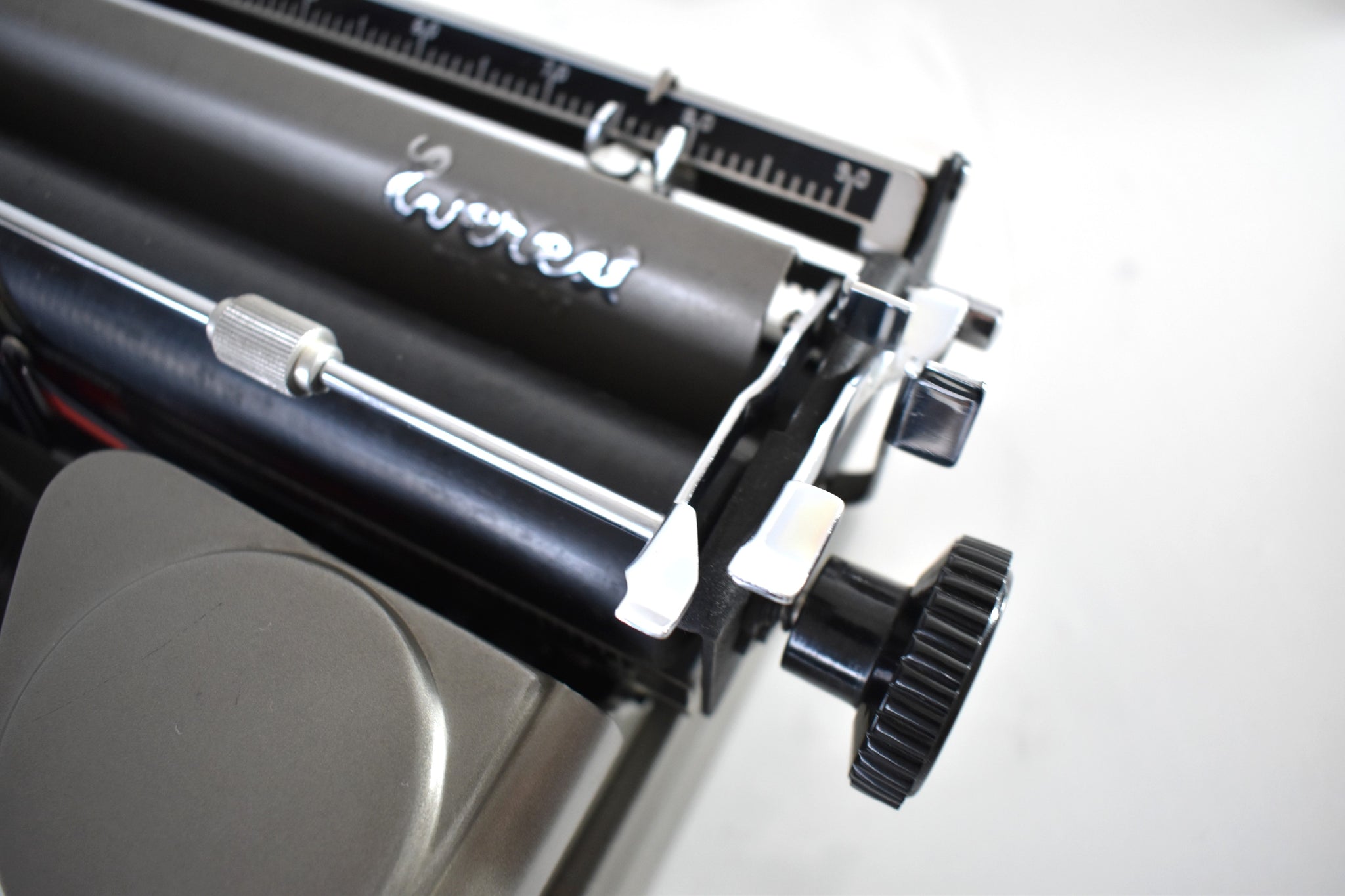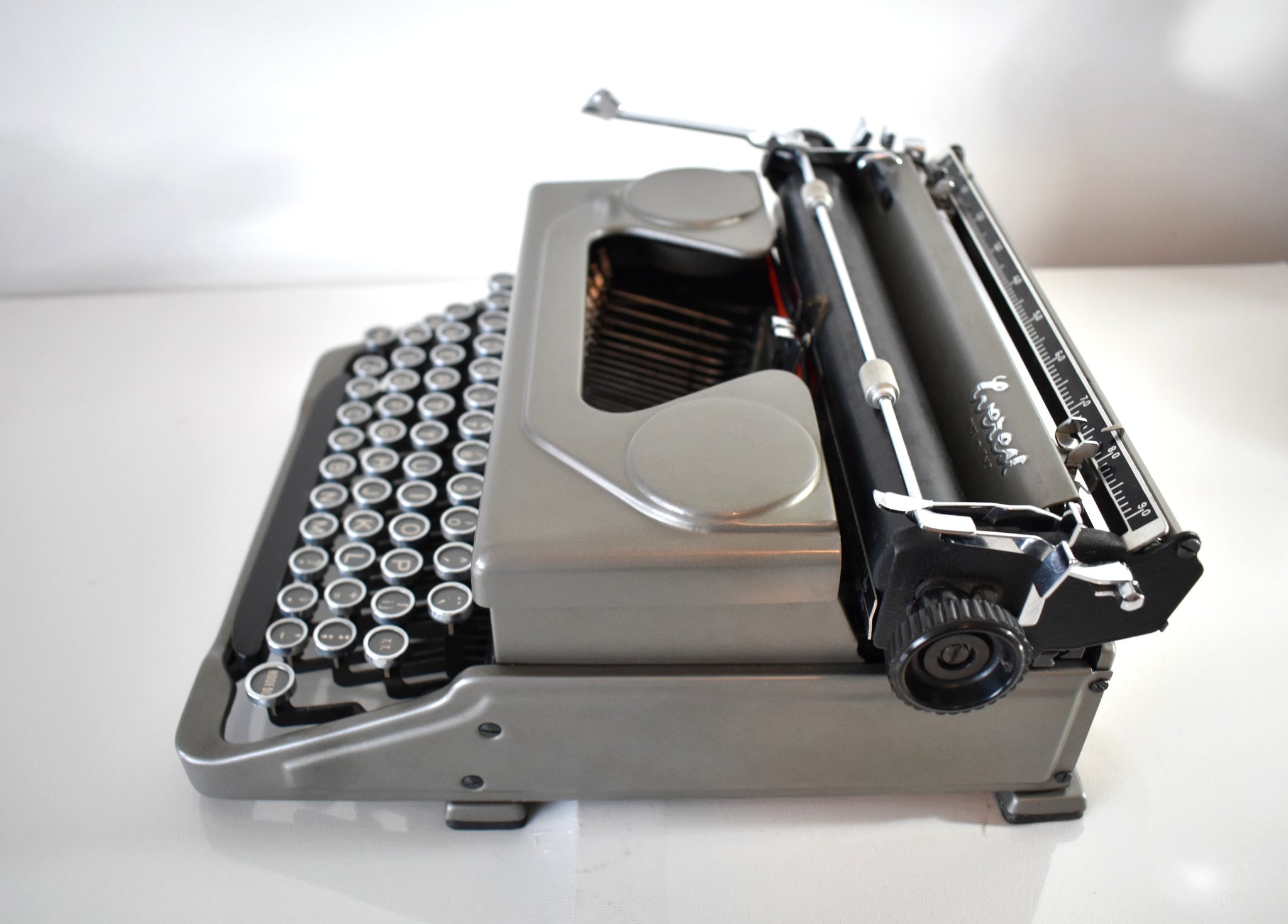 Stunningly beautiful gray Everest mod. 90 manual typewriter. It was made in 1952 in Italy after an Italian designer. This typewriter is so comfortable to type on! It has many great functions - comfortable glass keys - very responsive, customizable functions - such as margins setters, color switch (for different colors of ink).
